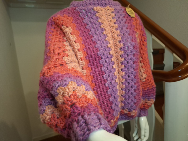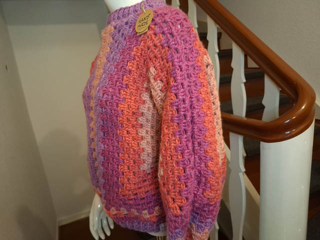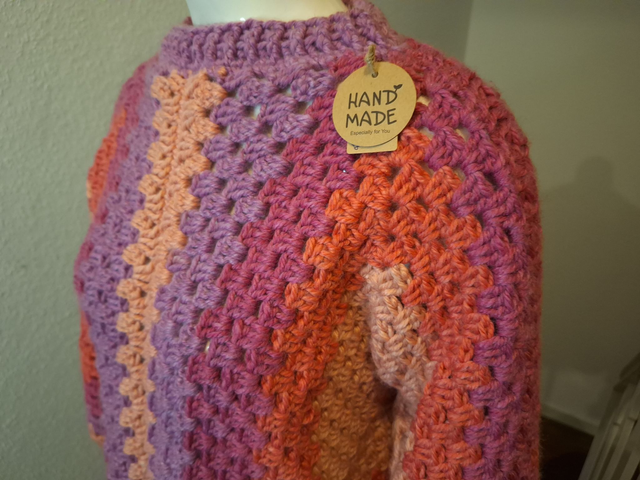 Dieser Pullover ist mit viel Liebe gehäkelt und wartet auf Dich!
